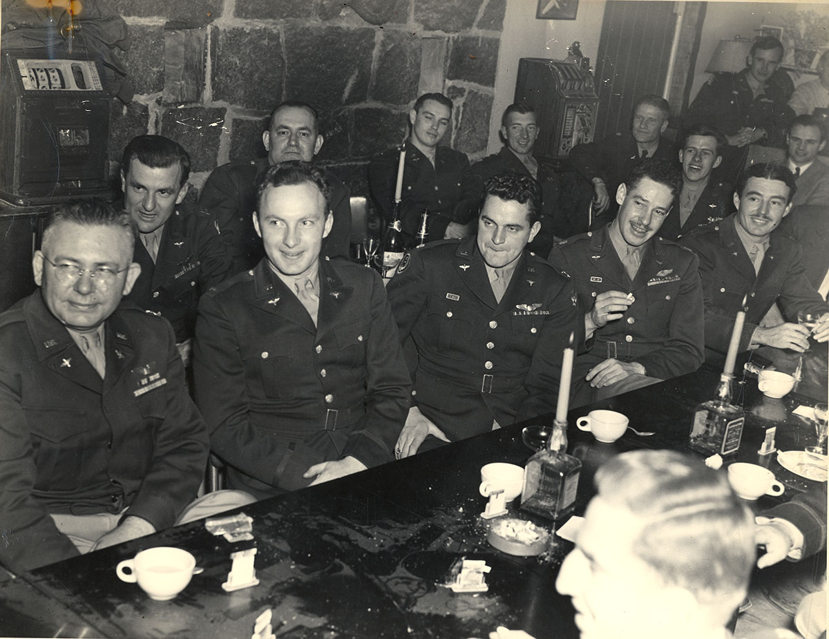 Pancho Barnes relaxing with Phoebe Omlie and Irma “Babe” Story at the Happy Bottom Riding Club bar (Below). Phoebe Omlie (center) flew in the first Women’s Air Derby with Pancho and later worked for the FAA. Irma “Babe” Story (on right) was a student of Pancho in her Civilian Pilot Training class in 1941. One of Pancho’s favorite toasts was “May you live as long as you want, and want to as long as you live.”