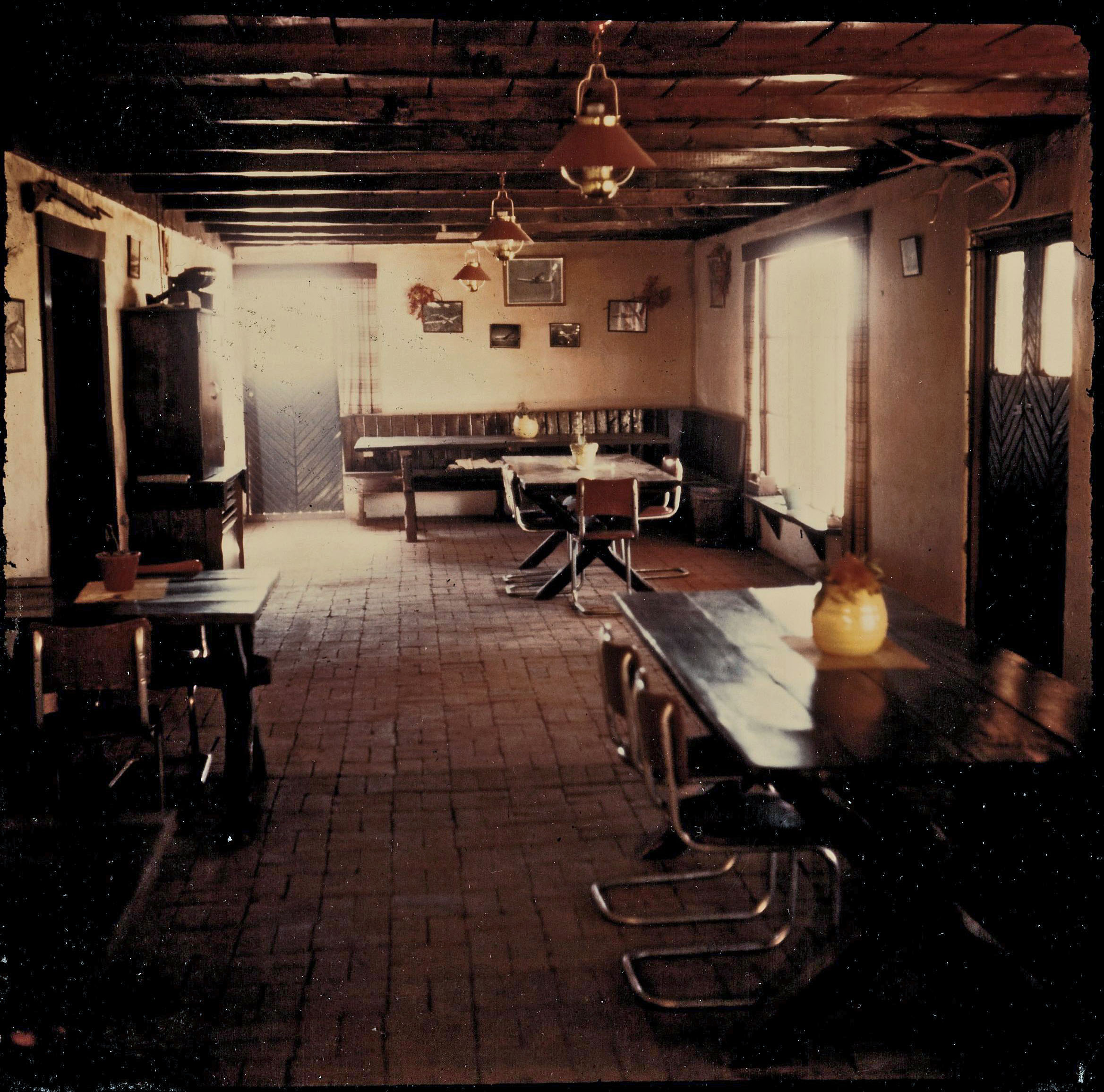 This is a view of the pool at the Club. Legend has it that the reason the circular pool had an inclined ramp was so that Pancho could ride into the pool on horseback to cool off after a long day in the desert. In the background is Pancho’s house:
